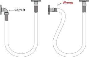 The repetitive bending of a hose to a radius smaller than the radius listed in the specification tables for corrugated hose will result in premature hose failure. Always provide sufficient length to prevent over bending and to eliminate strain on the hose.
