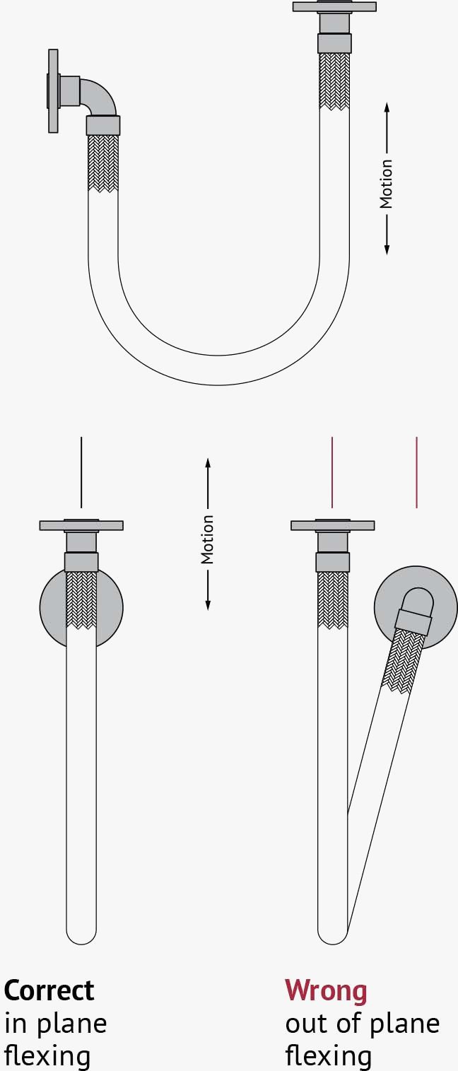 Corrugated hose is engineered to provide maximum service life when properly installed. Improper installation, incorrect flexing or careless handling in an application will reduce the effective service life of the hose and cause premature failure of an assembly. The following installation and handling precautions should be observed to achieve optimum performance from your corrugated hose assemblies.