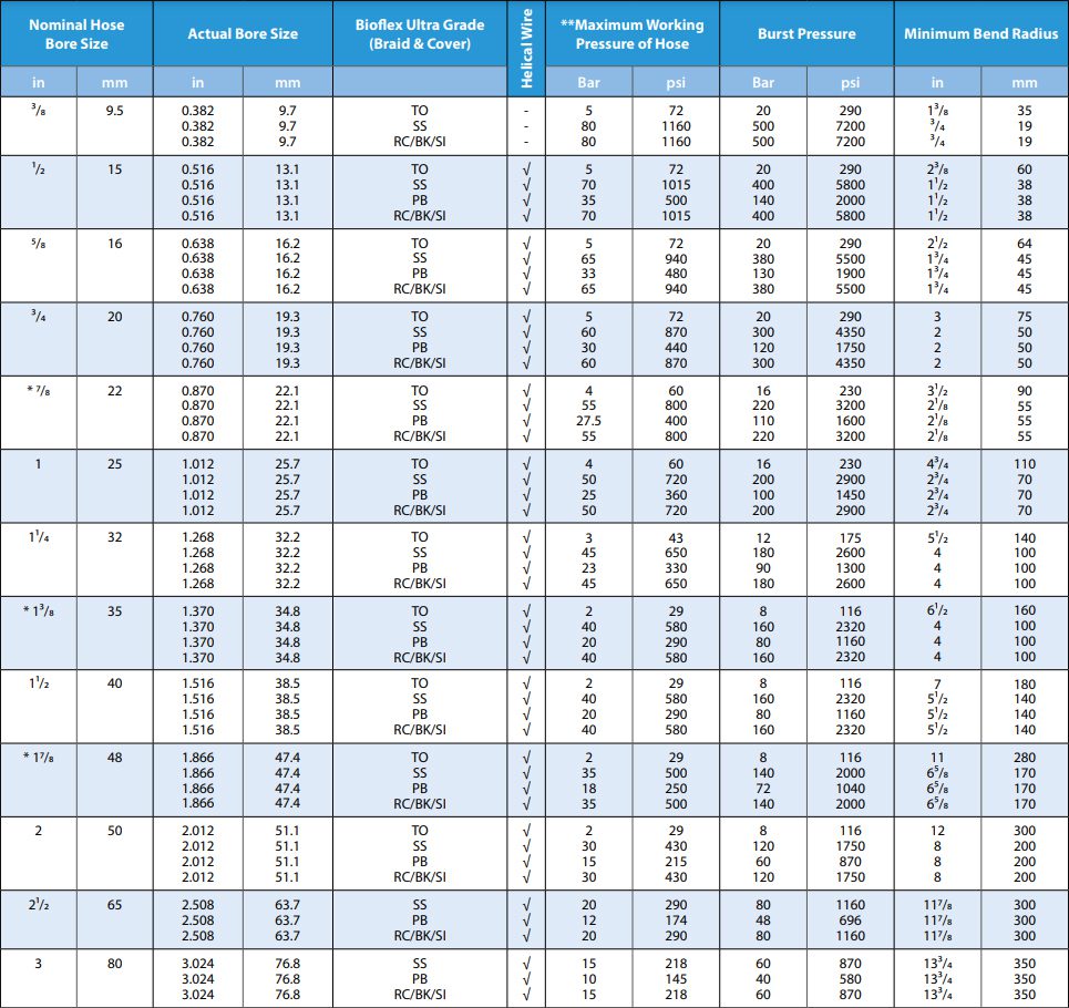 FOR SS BRAIDED AND RUBBER COVERED HOSE 1160 PSI (80 BAR) FOR 3/8” BORE HOSE, UP TO 218 PSI (15 BAR) FOR 3” BORE HOSE