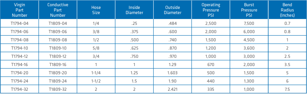 T1794 – Helically convoluted tube wall, non-conductive virgin PTFE tubing, over braided with 300 series stainless steel wire.