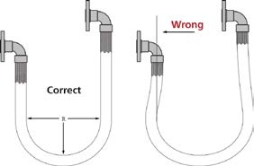 Corrugated hose is engineered to provide maximum service life when properly installed. Improper installation, incorrect flexing or careless handling in an application will reduce the effective service life of the hose and cause premature failure of an assembly. The following installation and handling precautions should be observed to achieve optimum performance from your corrugated hose assemblies.