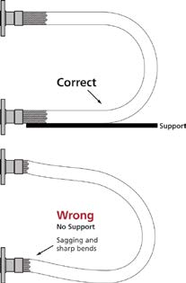 The repetitive bending of a hose to a radius smaller than the radius listed in the specification tables for corrugated hose will result in premature hose failure. Always provide sufficient length to prevent over bending and to eliminate strain on the hose.